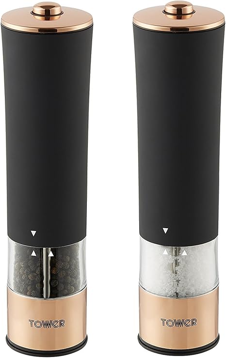 Amazon Com Tower Electric Salt And Pepper Mill Stainless Steel Soft Touch Body Rose Gold And Black Kitchen Dining