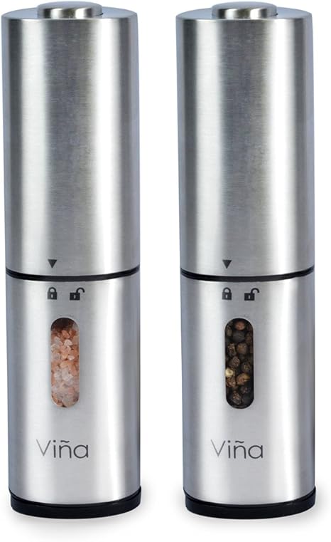 Stainless Steel Electric Salt and Pepper Grinder Set Enjoy delicious freshly ground salt and Enjoy delicious freshly ground salt and pepper with this convenient and stylish electric mill set. VINA VINAESP03-2PK Electric Salt and Pepper Mill Grinder Set. We also source as many materials and parts from local and regional vendors.