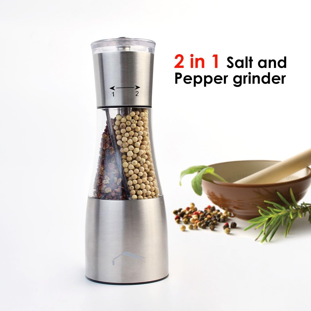 Amazon Com Joly Joy Stainless Steel Salt And Pepper Grinder Set 2 In 1 Salt Pepper Mill Shaker Easy To Fill New Kitchen Dining