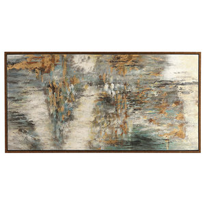 Modern Abstract Forest Lake Waterfall Painting 70 Wide Long Green Gray Gold. Sold by My Swanky Home - Free shipping. The smoke gray background is highlighted by bright orange aqua yellow and countless other vibrant hues accented by a sleek silver gallery frame.